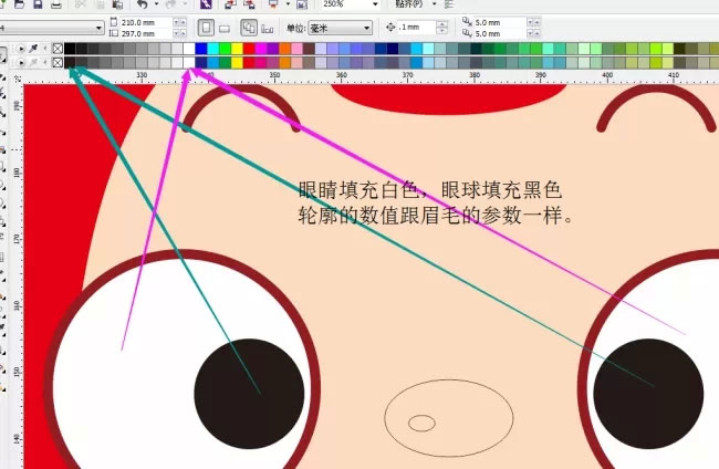 绘制好正圆后,我们把圆摆放好位置,然后我们在复制一个圆到左眼里面。如下图: