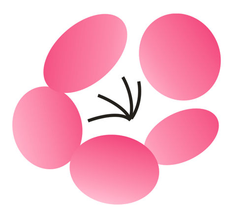 3、绘制花蕊部分。贝赛尔工具绘制五条曲线,加精点轮廓