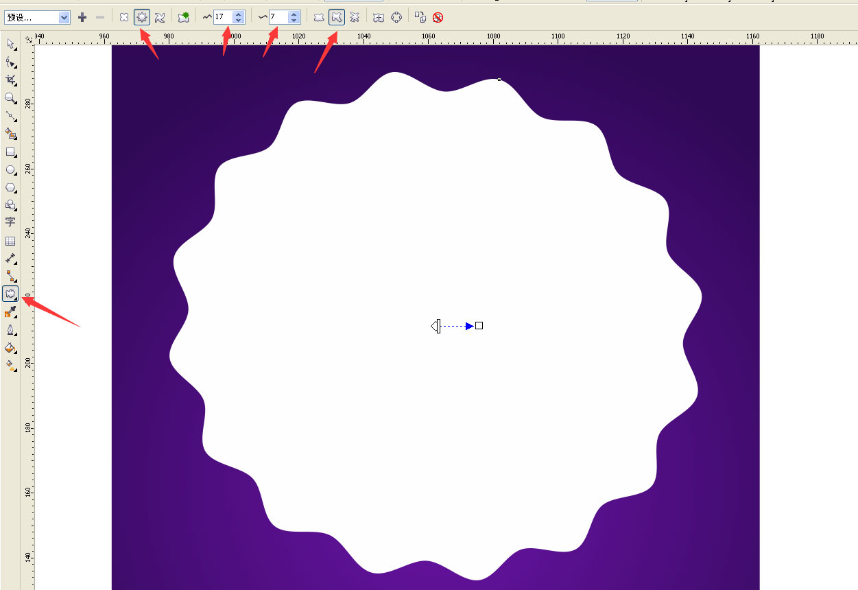 2、椭圆工具绘制一个椭圆大小差不多就行,选择左边工具栏里的变形工具设置参数,如图