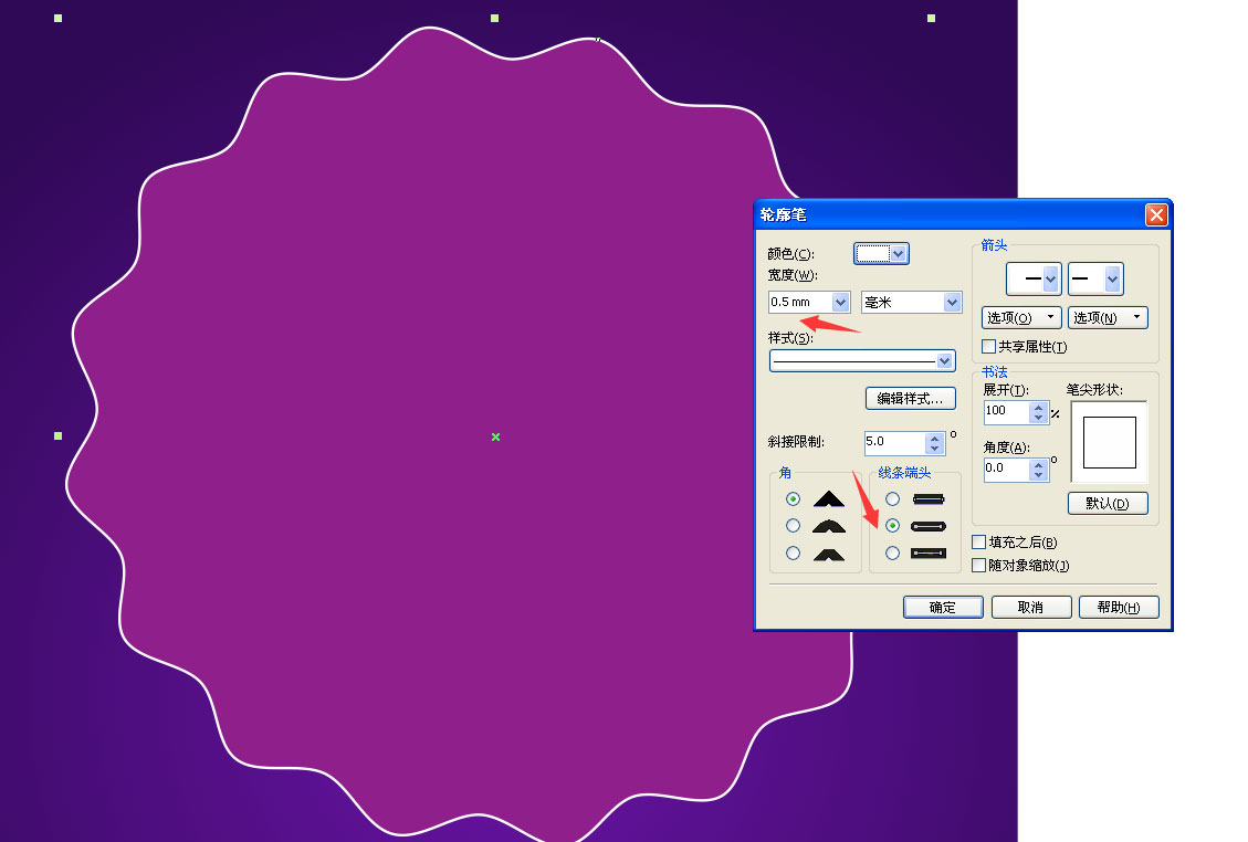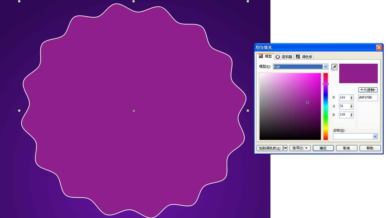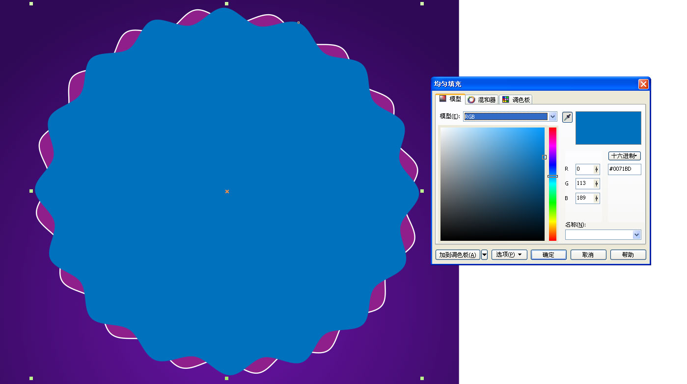 3、把变形好的形状填充颜色,轮廓也填充白色,如图