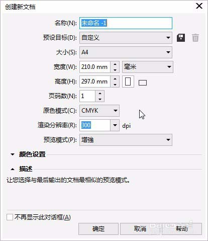 1、新建一文档 ,参数如图。