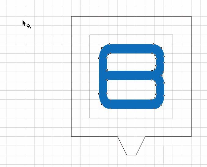 9、选择文字工具,输入B字体,字体选择“时尚中黑简体”,没有字体可以在网上下载。放在框里去,对齐网格的情况下,拉高调整。选择菜单栏的对象命令-->转化为曲线。如图。