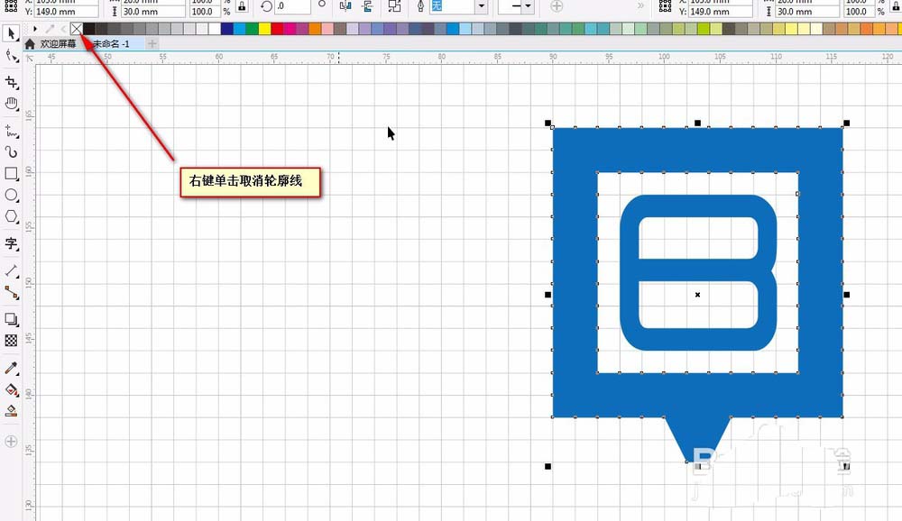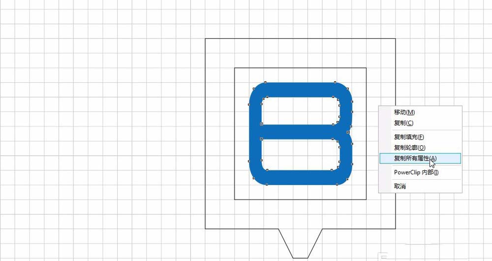 12、右键拖动B到外边框,选择 复制填充所有属性。并在颜色栏的×点击右键取消轮廓线。