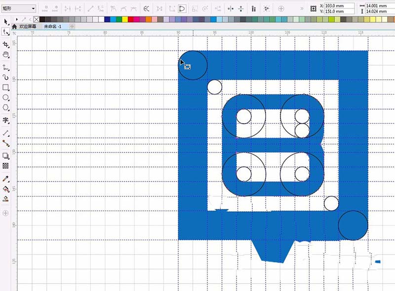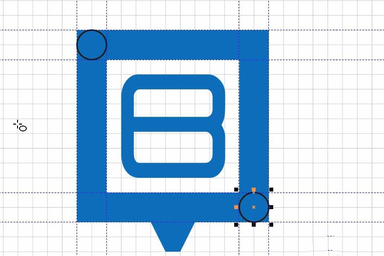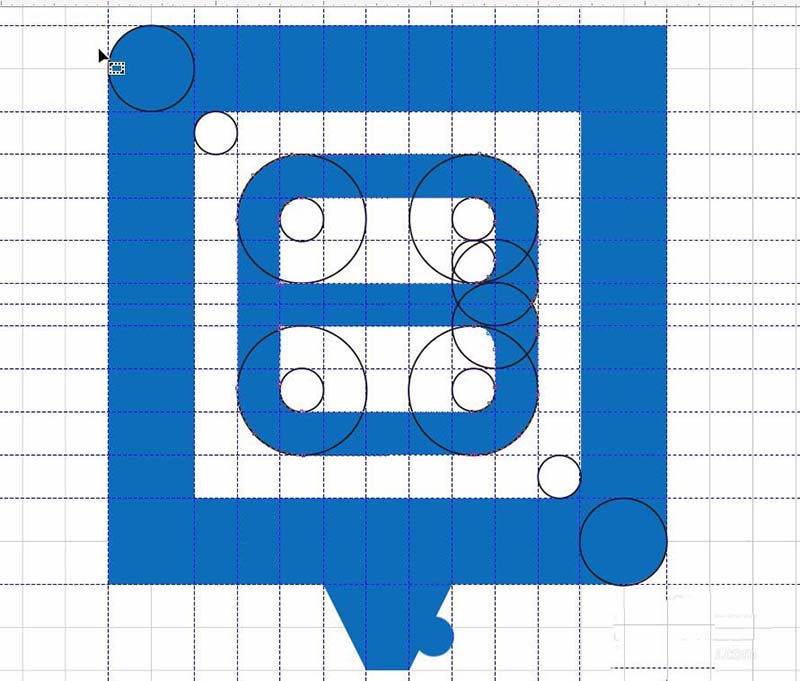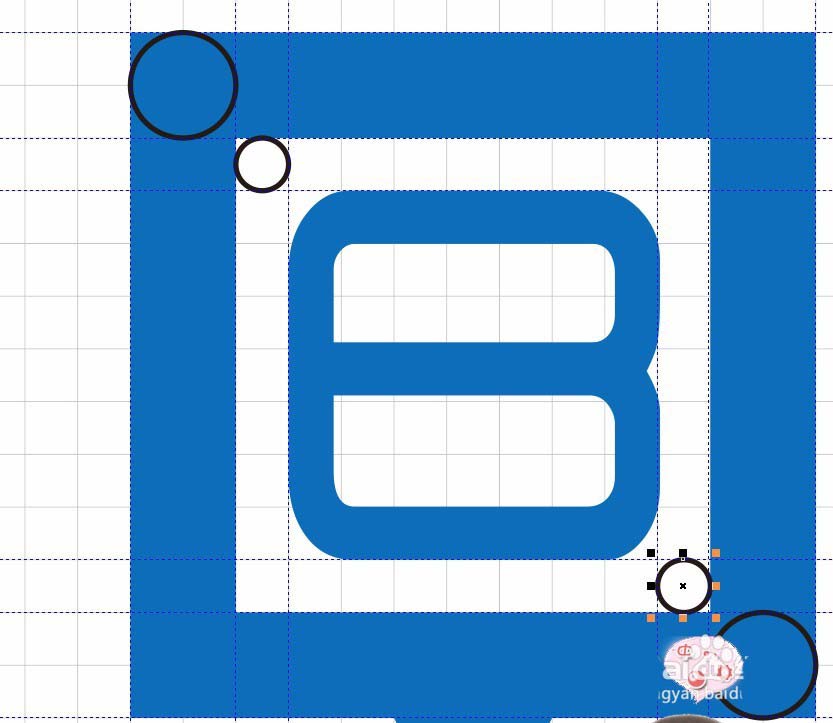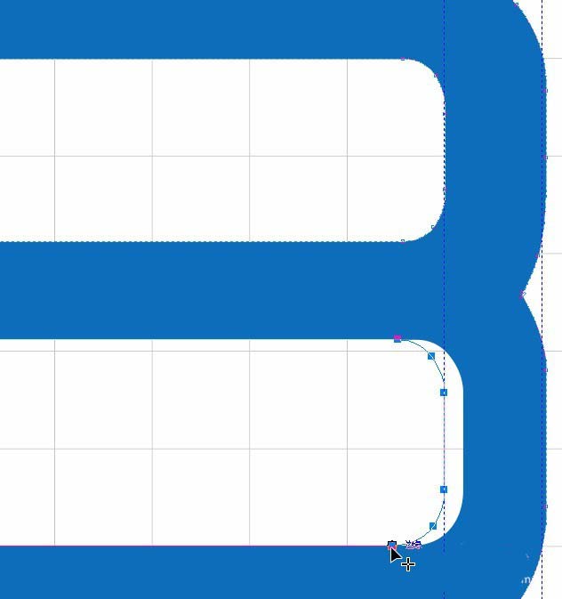 16、对于内部如图。需要用到形状工具调整图形。选项节点并选择一个点,按住ctrl键拖动。如图。可以拉辅助线辅助。