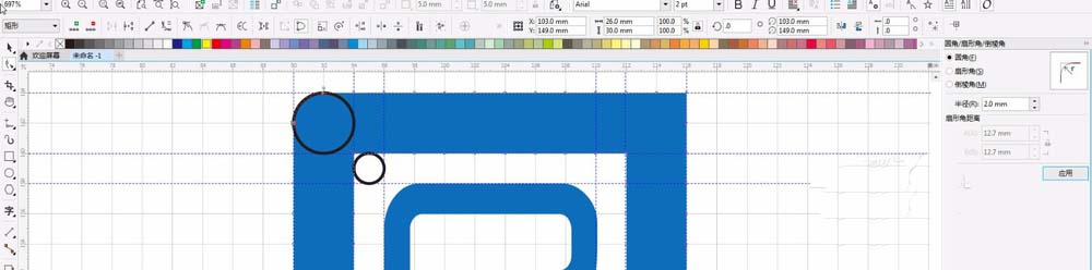 15、选择菜单栏的窗口-->泊坞窗-->圆角/扇形角/倒菱角,对话框。在半径里输入:2.0mm;单击运用。效果如图。内部位置,给半径1mm的效果。如图。