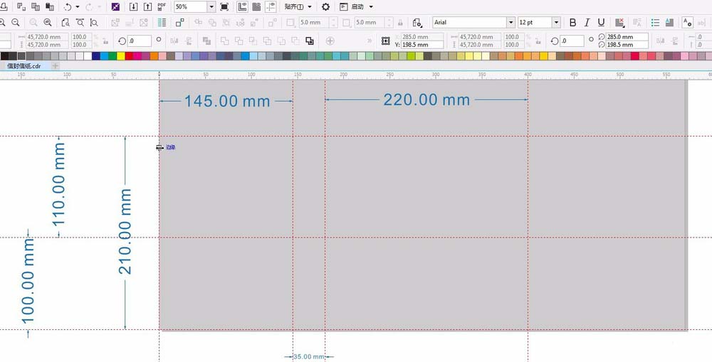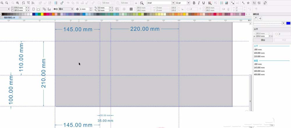 5、信封 .ctrl+j调出选项菜单-->文档-->辅助线-->水平:0;210;100;添加;添加;垂直:0;145;180;400;添加