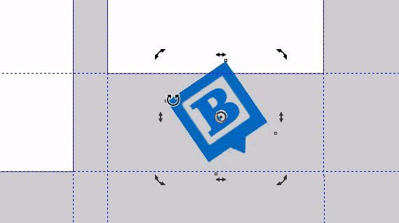 8、将其中一份进行选择选择工具,双击,之后旋转。在左边工具箱选择透明度工具。在属性栏上再选择 均匀透明度,“常规”,85%。按住鼠标左键拖动右键单击复制一份。用鼠标右键拖动放在左边矩形右下角,出现对话框选择powerclip内部。(也就是图标精确裁剪内部),按住键盘上的ctrl键。鼠标左键单击,调整位置。按ctrl键,单击空白处,调整位置。另外一个logo同样方法就可以。如图。
