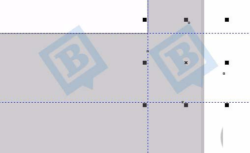 6、移动所有辅助线,到页面中心。可以选择。编辑-->全选-->辅助线;辅助线变成红色后,单击其中一根,拖动到页面中间。然后再属性栏选择《贴齐》勾选贴其辅助线。辅助线必须标准。这样绘制的矩形才会标准。现在绘制2个矩形。都填充白色。如图。