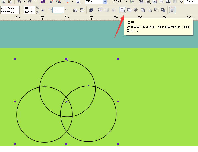 9、把椭圆全部选中点击合并,再绘制一个矩形放到上面,移除前面对象,去掉轮廓填充颜色,如图