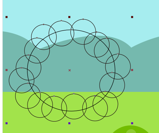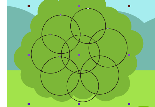 11、绘制卡通树,椭圆工具绘制一个椭圆,多复制几个摆好位置,把所有椭圆全部选中点击结合(方法同绘制草堆一样),如图