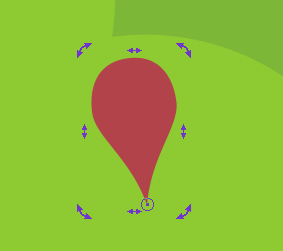 13、绘制几朵花放到树上面,选择基本形状里的水滴形状绘制一个水滴,填充颜色双击把中心点移到右下面然后旋转复制几份,如图