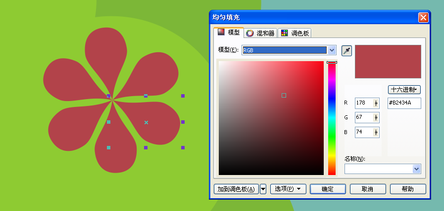 21、最后再用椭圆工具绘制花朵,填充颜色完成。