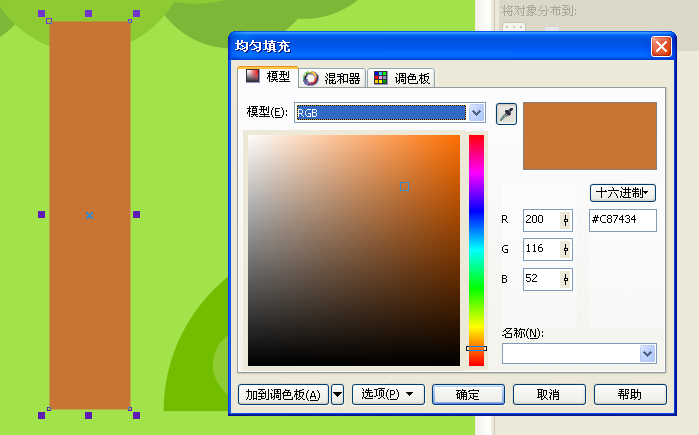 2、矩形工具绘制32厘米长 高22厘米的矩形,填充颜色如图