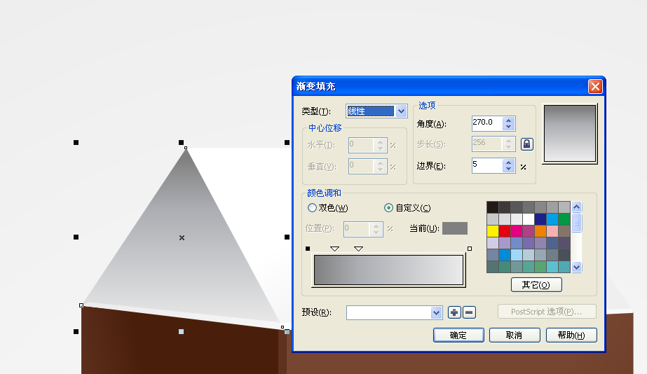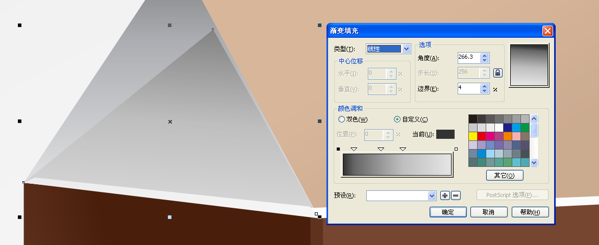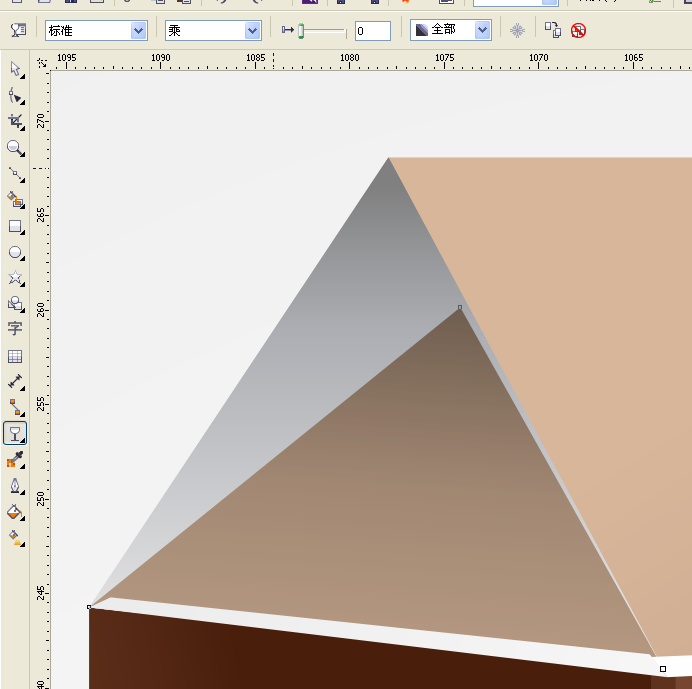 7、用贝赛尔工具绘制一个三角形填充渐变放到之前三角形上面,如图