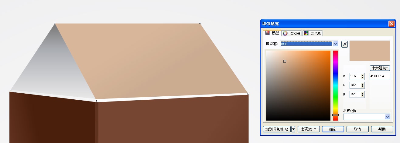 5、用贝赛尔工具绘制一个三角形放到侧面,填充颜色,如图