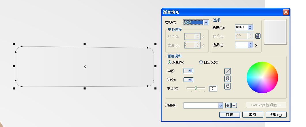 4、绘制上面盖,矩形工具绘制制一个54MMX27MM的矩形填渐变,如图