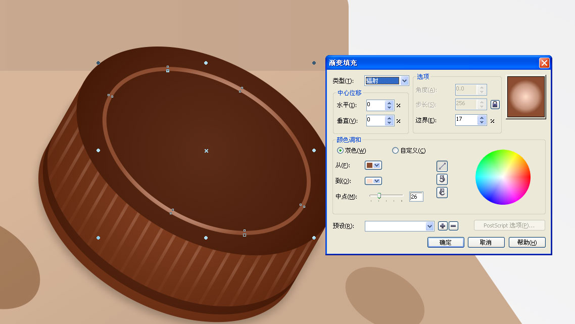 21、把步骤20的椭圆复制一个等比例缩小,清除填充把轮廓加粗点,再把轮廓转为对象,如图