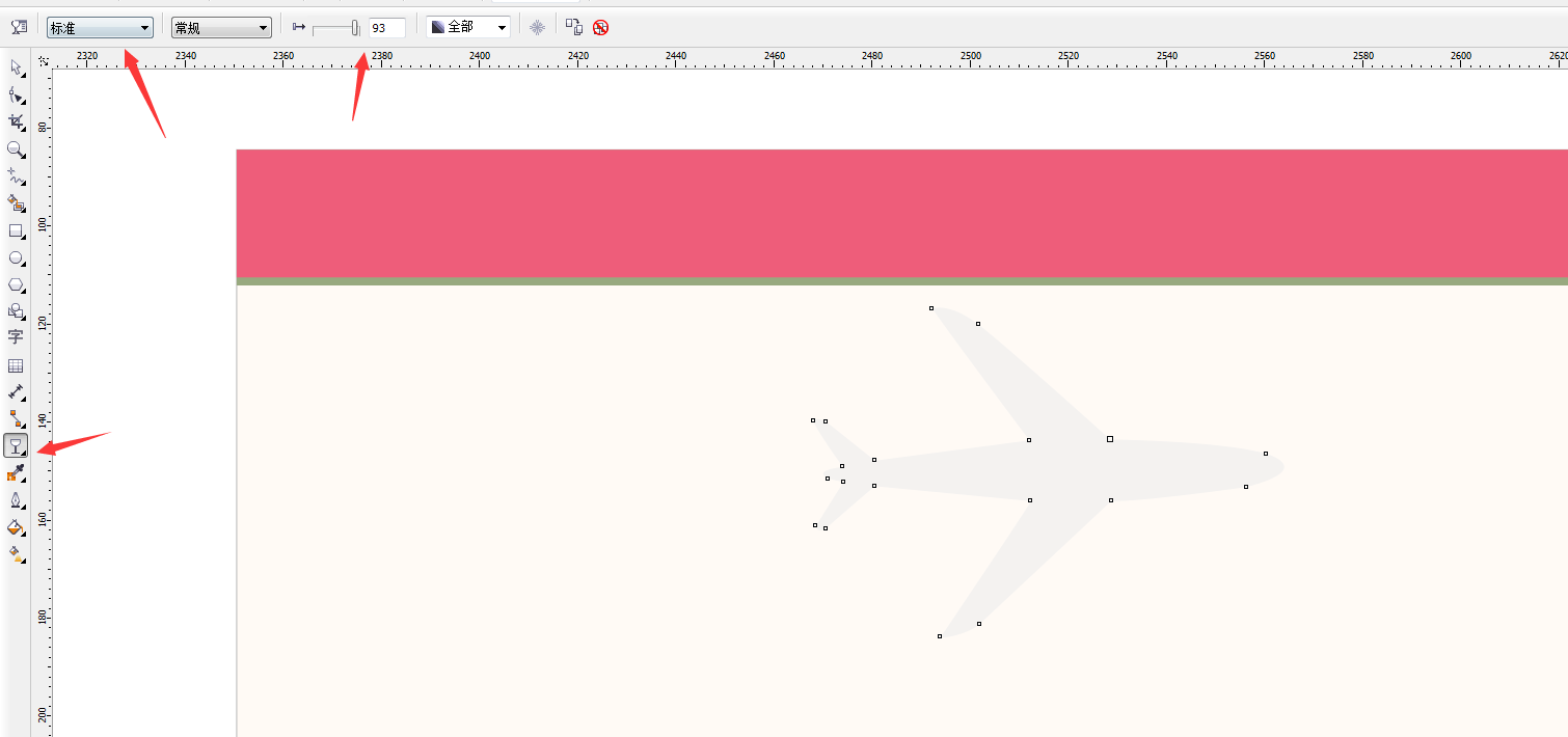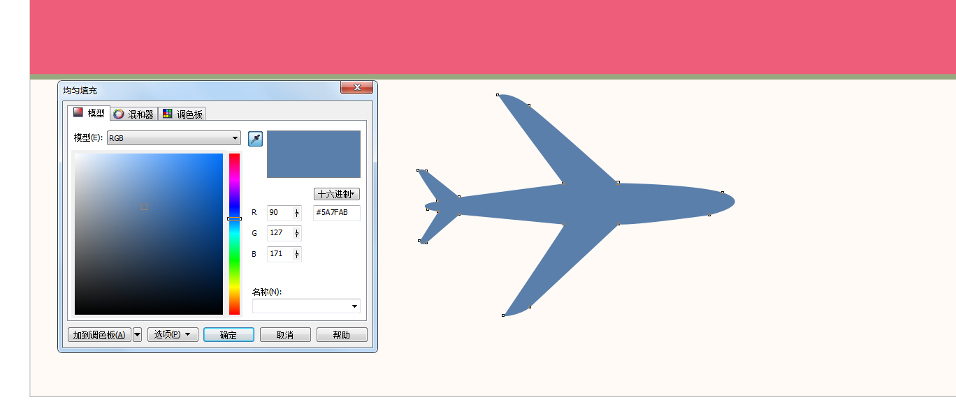 3、既然是航班必须得有飞机啊,所以用贝赛尔绘制一个飞机形状,填充颜色,如图
