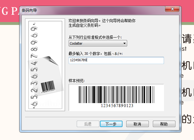 8、插入条码,点击编辑里的倒数第四个条码,参数设置如图