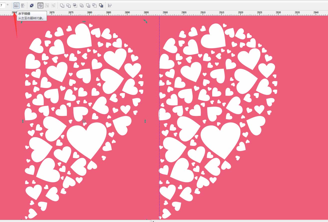 12、把绘制好的心形全部选中群组复制一份水平镜像放到左边,如图