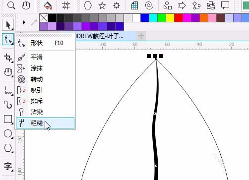 5、选择【粗糙】工具绘制叶子的边边。选择形状工具,调整如图形状。