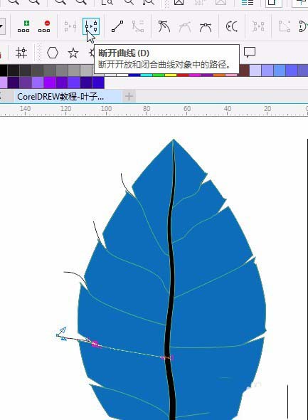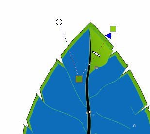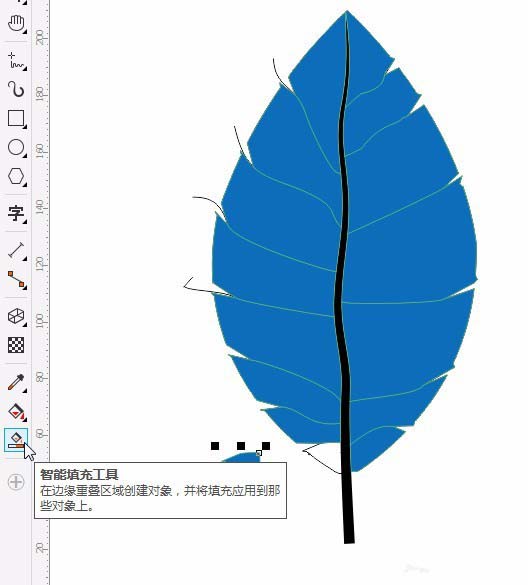 7、用智能填充工具填充色块。用形状工具点击需要断开的地方,删除不要的线段。给底下叶子填充#61AD0D.