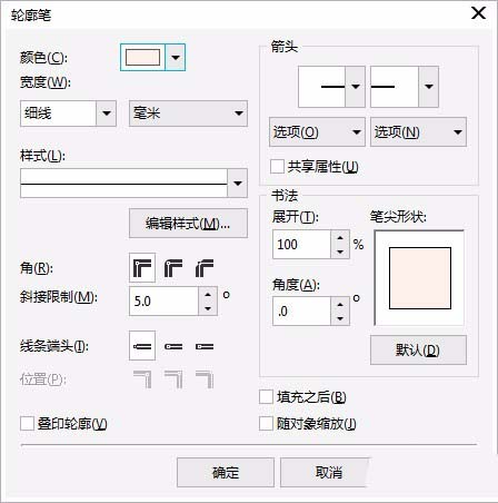 7、选择贝塞尔工具绘制直线,并按F12对其进行设置。参数如图。