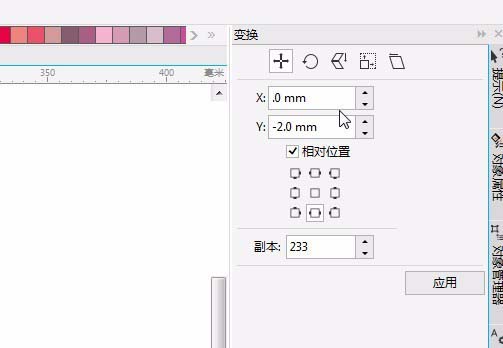 8、选中直线,点击 窗口-->泊坞窗-->变换-->位置;也可以按alt+F7,设置参数,如图。在画面中垂直复制直线。