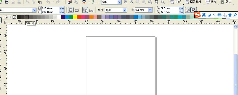4、用鼠标按住左上角拖动到属性栏下方。将调色板放进去。
