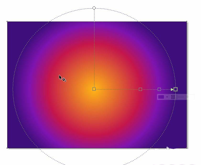 1、新建一个页面A4,颜色模式RGB,横向。双击矩形工具绘制一个和页面等大的矩形,按F11,填充渐变色椭圆的①#3D0F7A②#7D14AE③#C3164B④#FEB715,按G调整渐变。