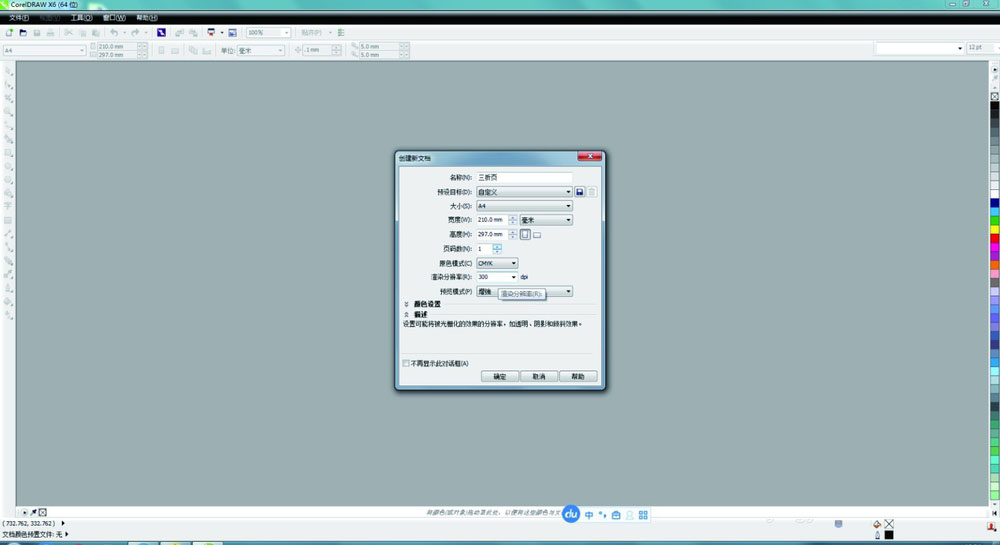 1、我用的是cdrX6,别的版本都大同小异,区别不大。先打开cdr,新建一个分辨率300,A4大小的的。