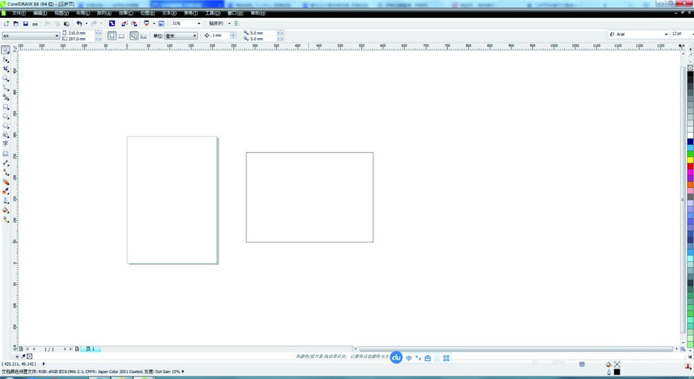 2、再画一个A4大小的矩形(210*297)横版的。再四周各留三毫米出血。