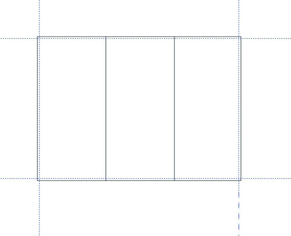 3、三折页分为三部分,画三个矩形,分别是100*210 100*210 97*210.放到刚才画的A4矩形中。