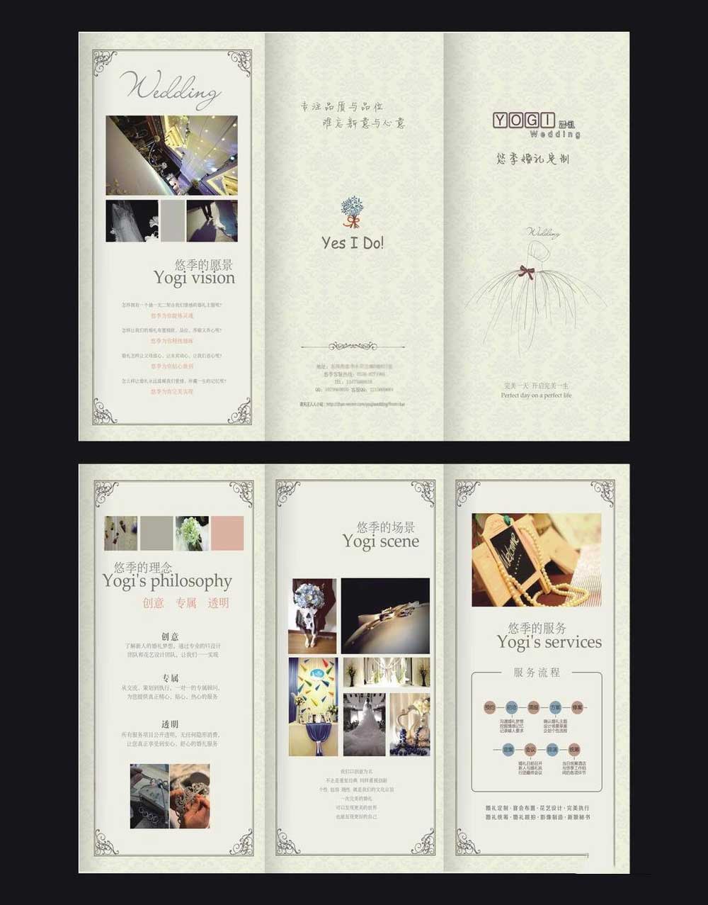 5、这样大概的模板就做完了。三折页连着设计时从左到右第二折也就是中间的这一折是封底,第三折也就是右边的这一折为封面. 最左边的一折一般印公司简介. 反面的三折都印产品内容