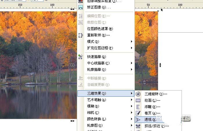 3、然后,鼠标左键单击菜单【位图】>>【三维效果】>>【透视】,如下图所示。给素材图片添加一个透视效果。