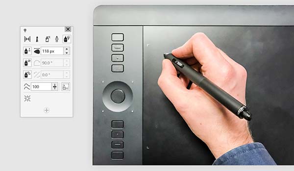 关于实时触笔 (RTS) 和 WinTab:您可以充分利用 RTS 兼容手写板或设备的压力和倾斜来控制笔刷笔触。CorelDRAW支持实时触笔 (RTS) 接口(Windows 7 已引入此功能)。如果您拥有兼容 Wacom 的图形蜡版或设备,那么仍可以使用 WinTab 接口以获得最佳效果。