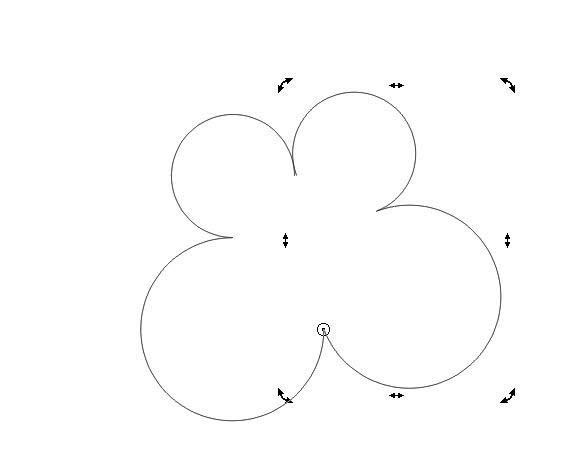 2、将下面的圆放大。点击属性按钮中的“弧形”再将两圆改为弧形,用形状工具调整。全选,群组。