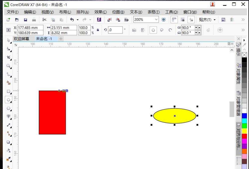 2、绘制个矩形填充红色,椭圆填充黄色。