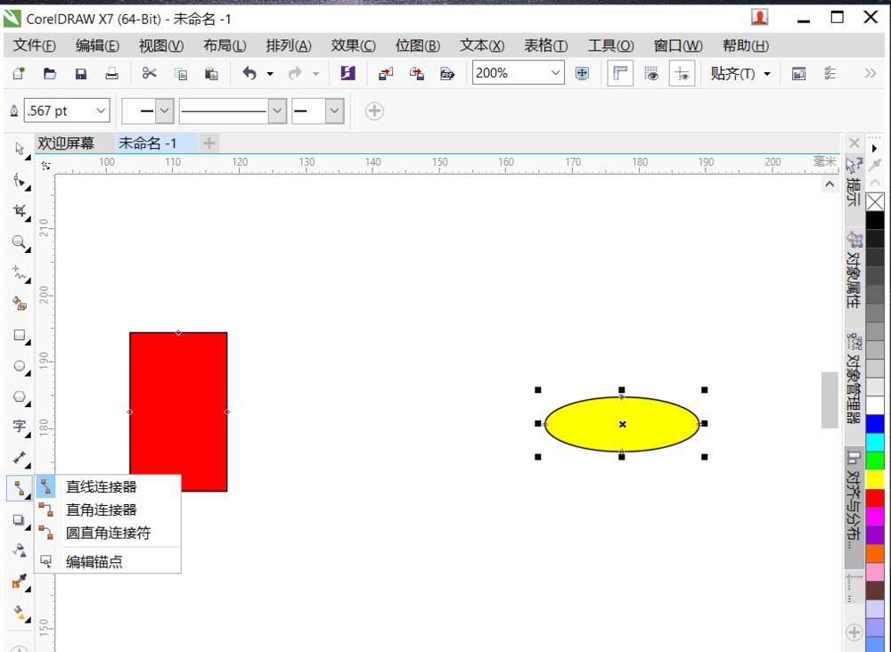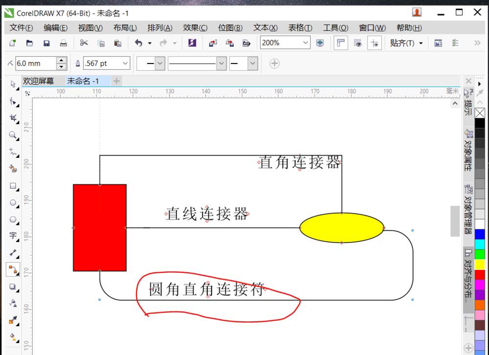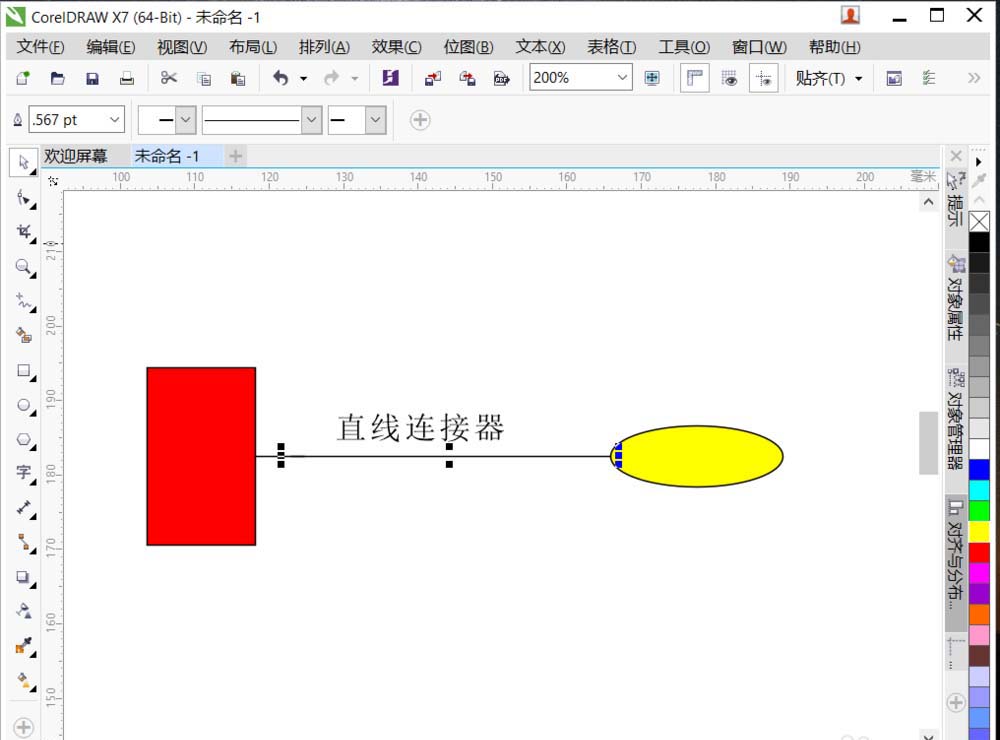 4、选择直线连接器,会把两个对象通过直线连接