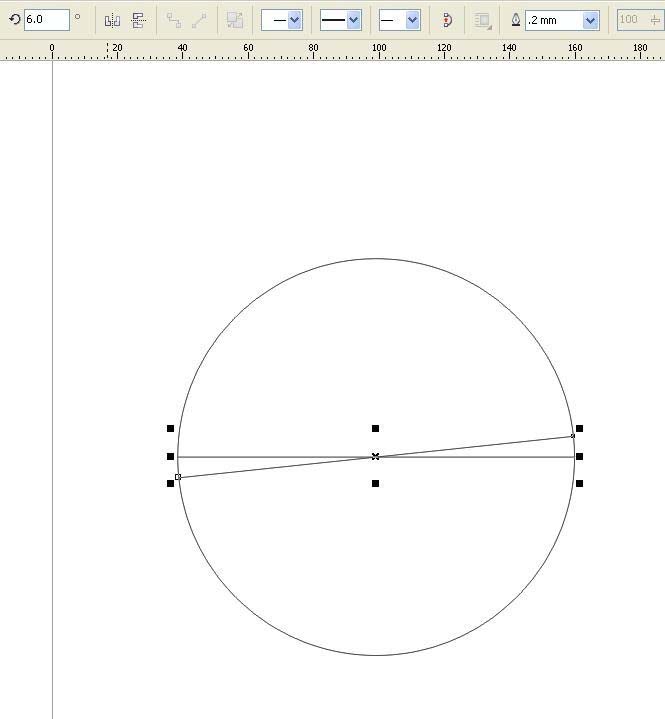 2、将直径原处复制一份(+),在属性栏里的旋转角度填写6。(360/60=6)
