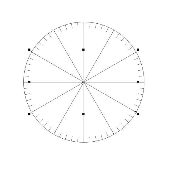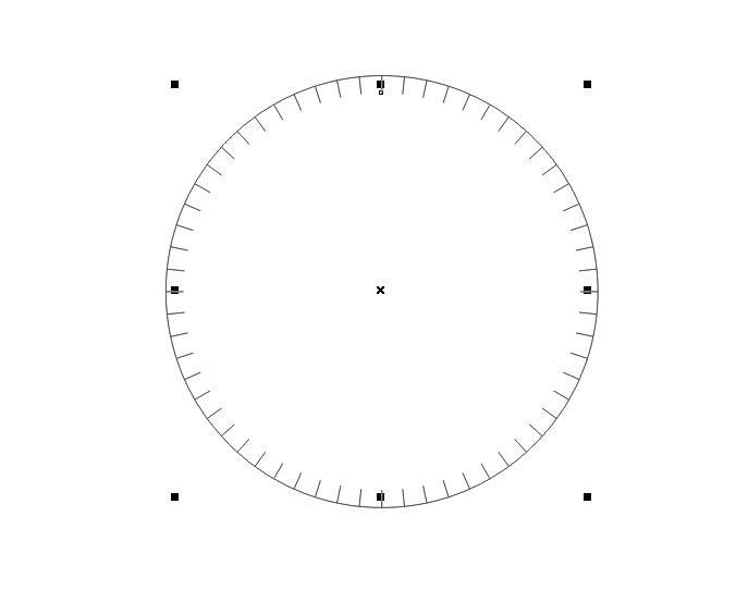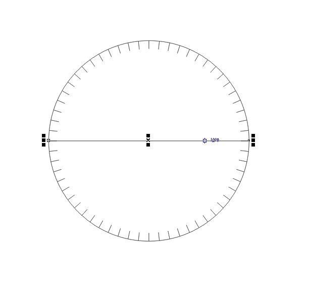 8、将步骤5的圆,复制一份再缩小,如图。表的时间刻度便画好了。