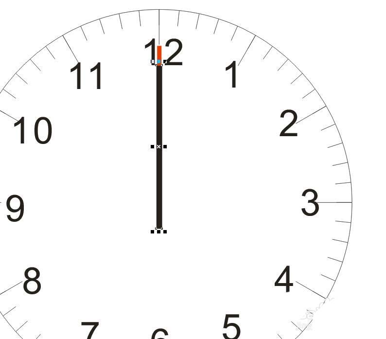 11、将秒针复制一份,缩短加粗,填充黑色,作为分针。