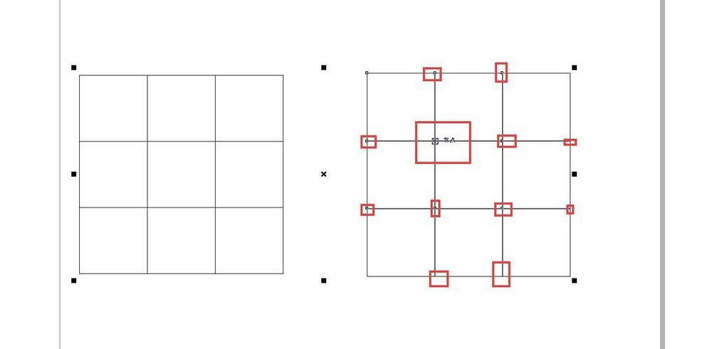 4、我们将左图(表格)打散并取消群组。Ctrl+K,Ctrl+U。发现表格是可以拆成单独的线。由此说明表格是多根直线结合而成的。