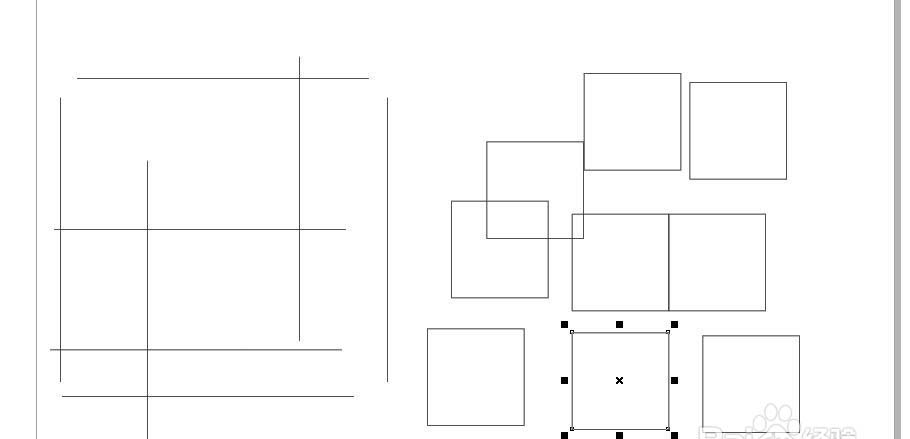 5、对右边的图纸执行Ctrl+ u,取消群组。发现图纸可以拆成一个一个的方格,而不是直线。说明它是由多个方格群组而成的,并没有结合。
