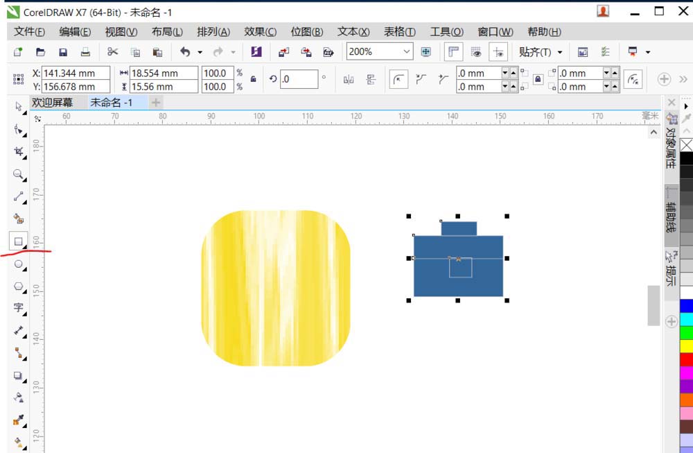 3、将矩形转化为曲线,用形状工具,点选矩形节点,拖动鼠标到合适松开,圆角矩形做出来了