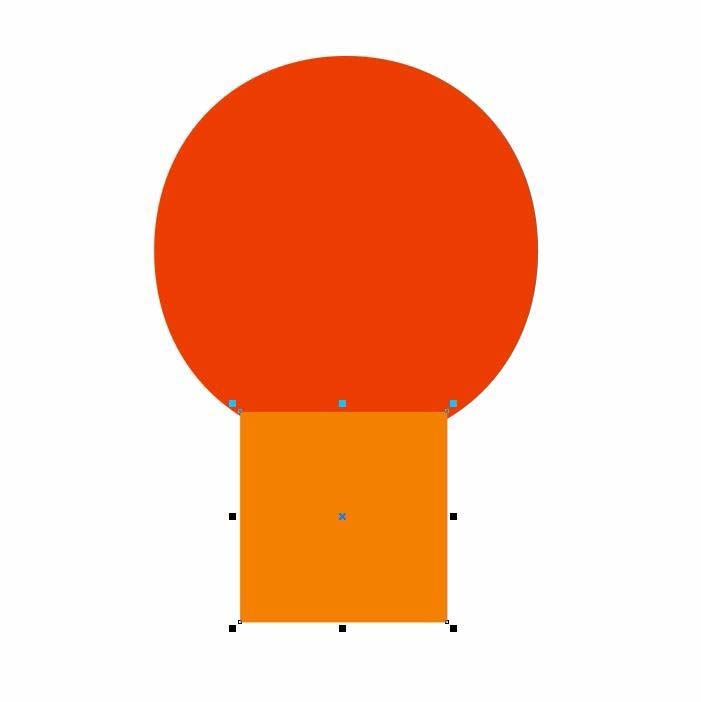 2、绘制一个矩形,将矩形顶端的两个角贴齐圆的轮廓,填充橙色,去掉轮廓线。如图。