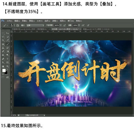 看到很多网友都在找开盘倒计时海报字体,今天脚本之家小编就教大家使用coredraw结合Photoshop制作漂亮的金色立体开盘倒计时字体,在cdr中主要是字体的制作,PS中主要是背景和字体特效的制作,难度不是很大,好了,话不多说,下面让我们一起看看具体的制作步骤吧!先看一下效果图!