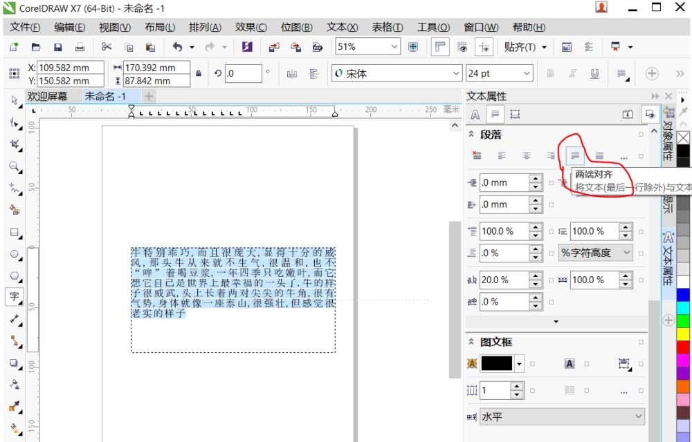 3、调节这段文字的文本属性