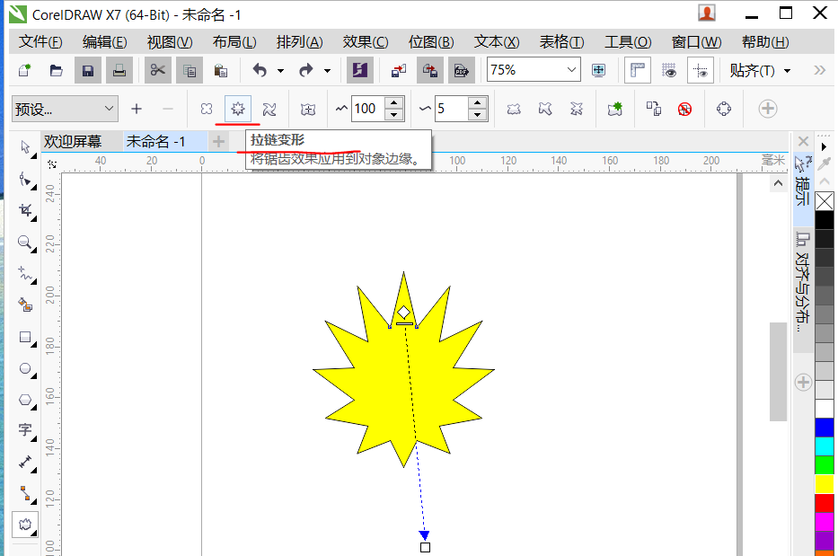 6、同样绘制个正圆,点击变形工具,选择第二个工具——拉链变形,按住拖动