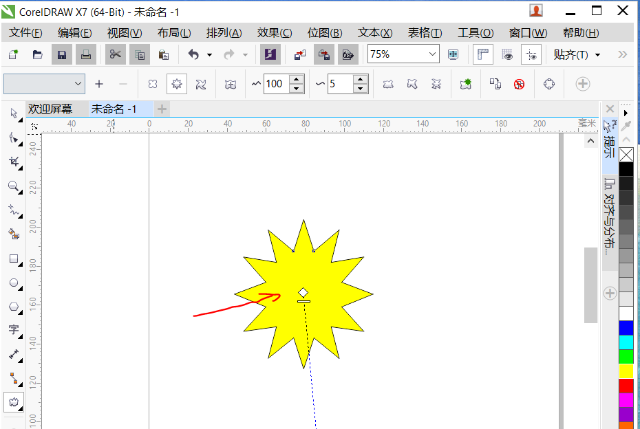 7、移动中心点位置,得到如图图形,还可以对属性栏各项数据修改
